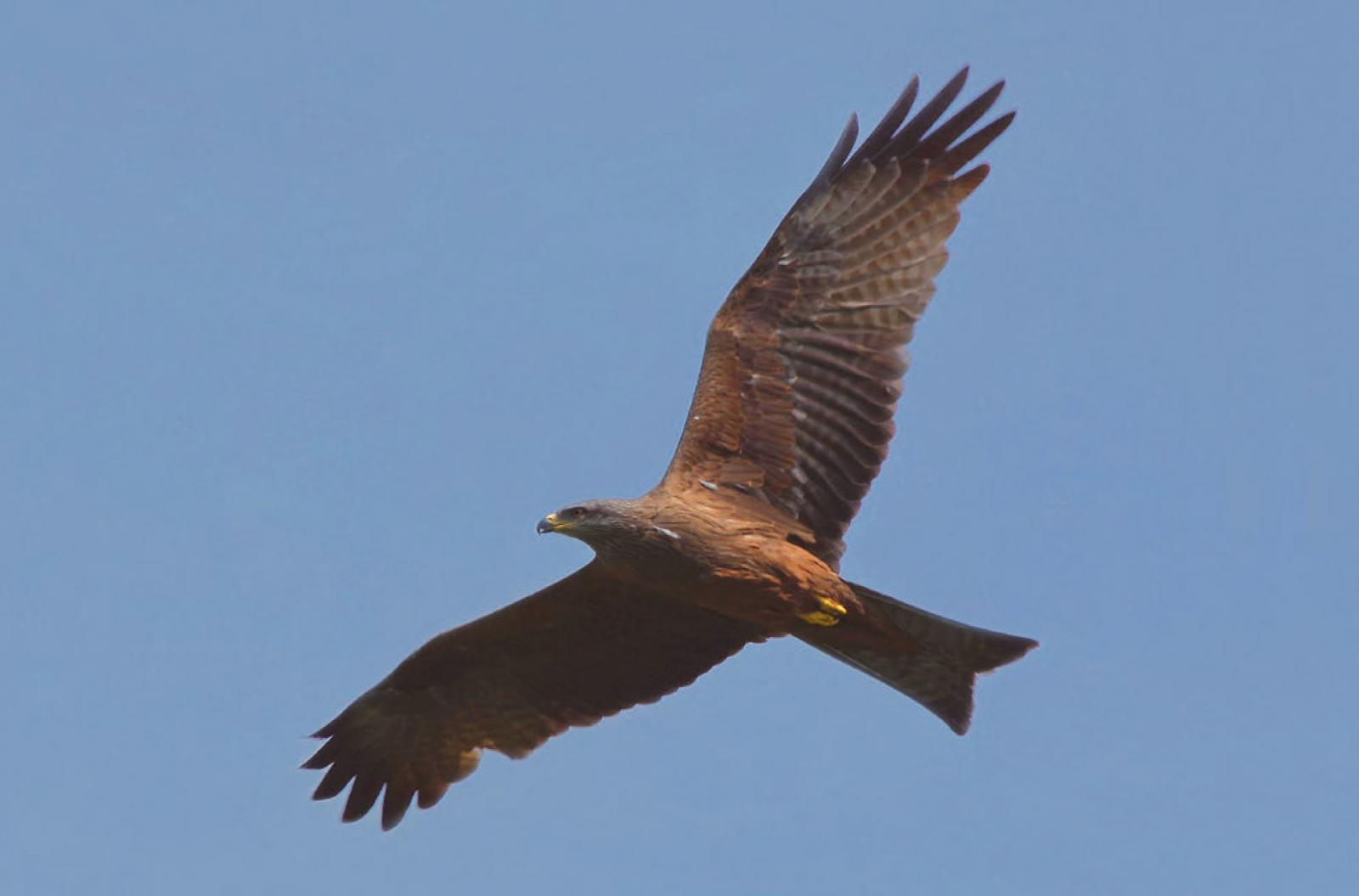 Erkennbar ist er an seinen spitzen Flügeln, seiner querbebänderten Unterseite und seinem Kopf mit dem charakteristischen schwarzen Bartstreif unter dem Auge. Er stösst eine Reihe schriller Schreie aus, besonders zu Beginn des Frühlings. Dann ist er besonders leicht zu beobachten.